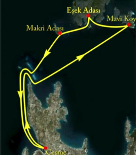 Alaçatı Koyları ; Alaçatı Deliklikoy – Kleopatra (Güvercinlik Koyu) – Çatalazmak Koyu – Burunsuz Koy – Açıkada Göl – Fok Mağarası – Nergis Koyu